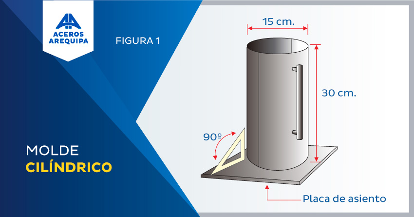 1. Los moldes para la elaboración de las probetas deben ser de acero, hierro forjado u otro material no absorbente y que no se mezcle con el cemento. Su resistencia debe soportar las condiciones del trabajo de moldeado y tener la forma de un cilindro recto de 15 cm de diámetro y 30 cm de alto (figura 1).
