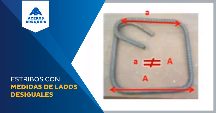 2.  Usar estribos con lados desiguales, ya que esto ocasiona que el recubrimiento no sea uniforme, por lo que el encofrado no va a ser parejo. En consecuencia, la columna no trabajará de forma pareja y, el lado donde hay menor revestimiento de concreto va a ser más propenso a que el oxígeno ingrese, el estribo se oxide y las columnas se debiliten.