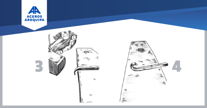 4. Calentamos la parte recta y la golpeamos hacia abajo. Hay que tener cuidado de que solo la parte caliente se deforme y de pie al retorcido. Para retorcer hay que girar hacia la izquierda y hacia la derecha.